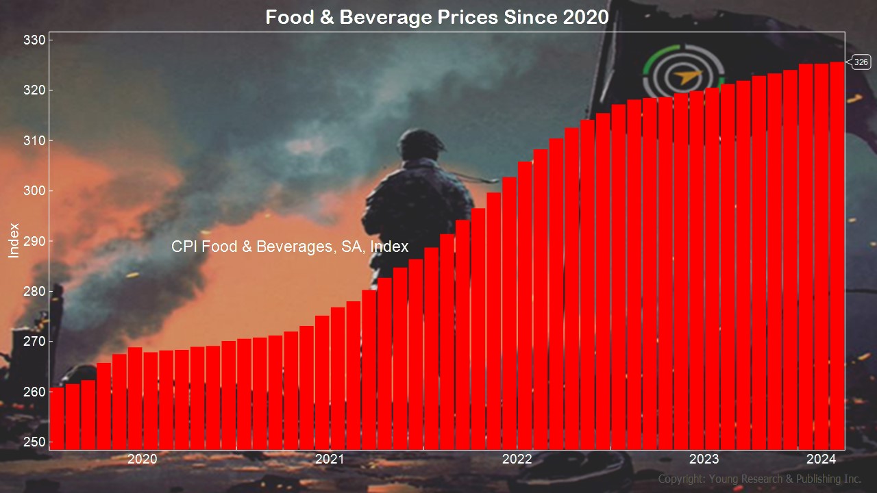 You know the Fed is a political beast headed by an unelected official in Jerome Powell. Yes, he was appointed by Trump, but is he playing to keep his job if Biden wins? With inflation like this, one would think interest rate hikes would be on the table. Yet Wall Street holds its breath for a rate cut (campaign contribution) in September. Stay tuned. In the meantime, check out food inflation, and you see the Fed is in the business of higher prices. The Wall Street Journal writes: