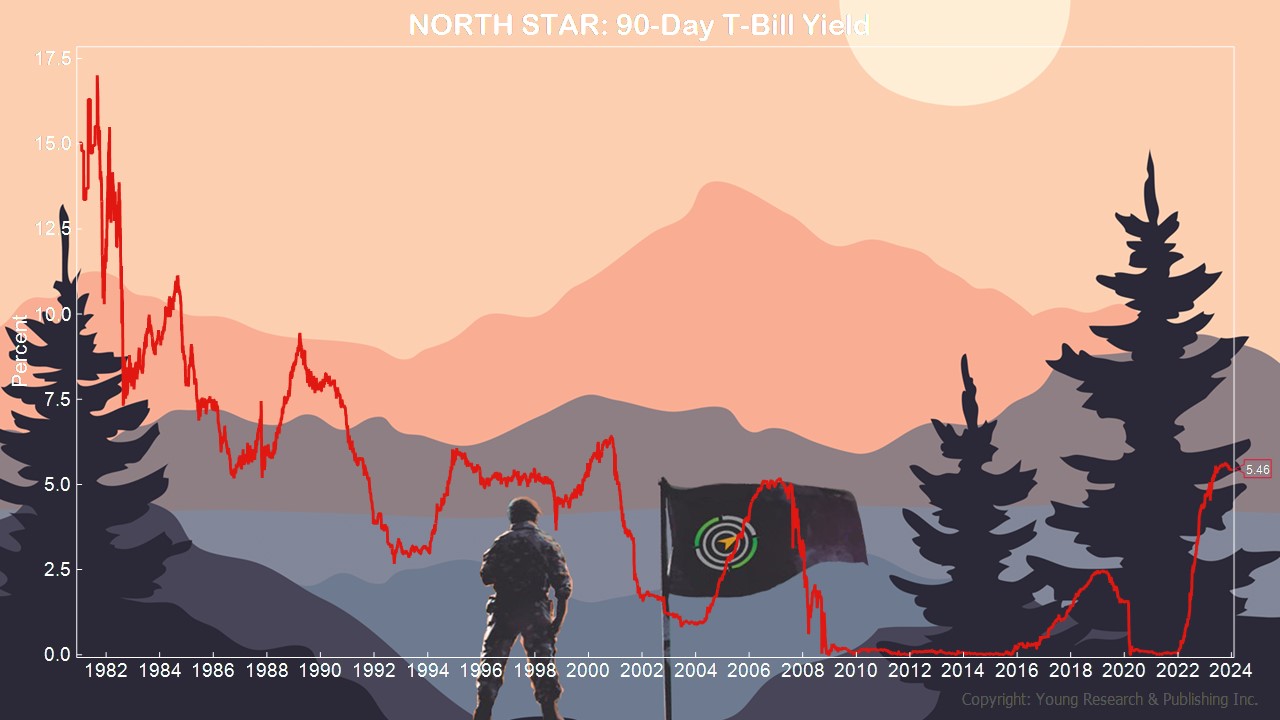 Here’s what I’m talking about. One of the first things you learn about investing in bonds is the risk-free rate of return. You can see it below. That’s gravity or Dick Young’s North Star. It’s your lay of the land.