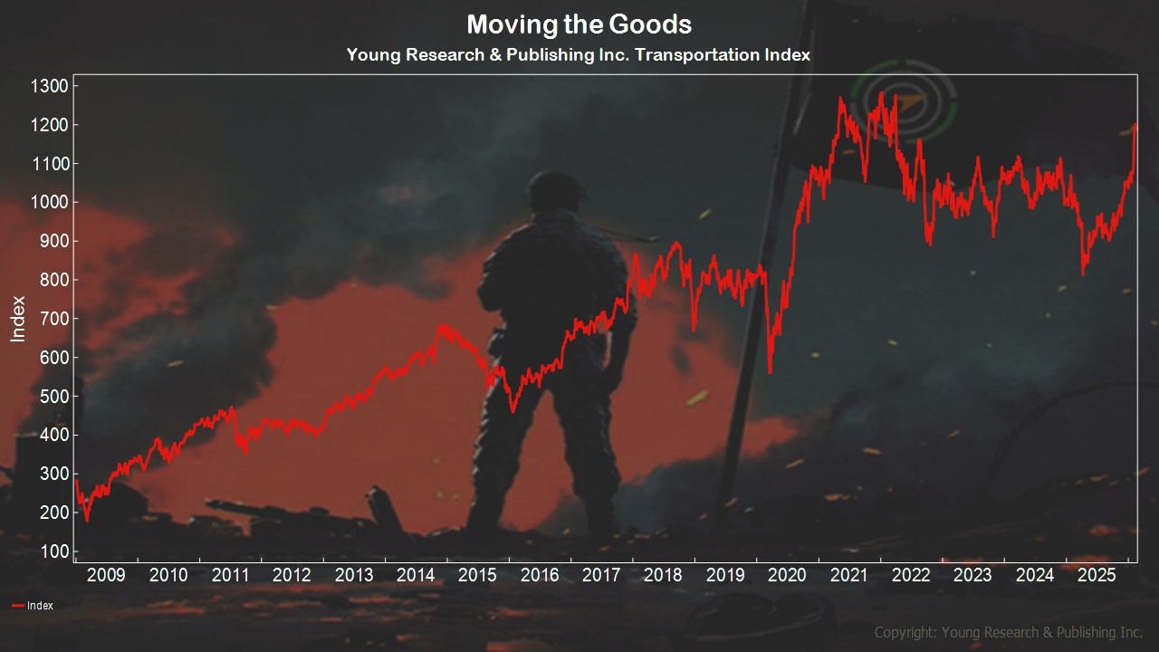 - For some additional evidence that the underlying economy is strong, take a look at slide 30, Young Research’s Moving the Goods Index. It’s surging.