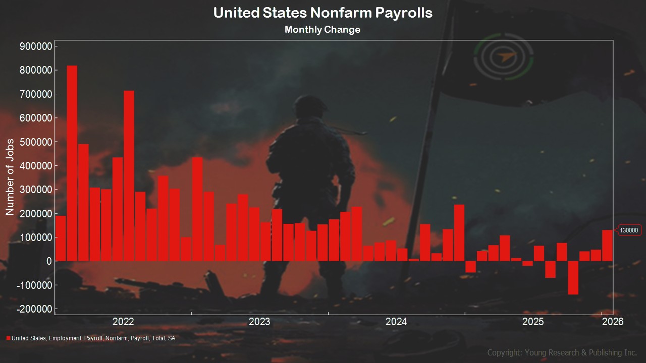 - Scroll to Nonfarm Payrolls (slide 34) and take a look at the major surprise jump in the number of payrolls reported today. A total of 130,000 were reported, while analysts polled by Bloomberg had predicted a much smaller 65,000.