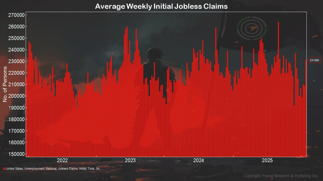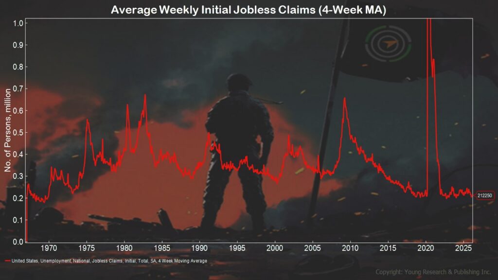 - Click over a couple more slides and you’ll see that average weekly initial jobless claims (the four-week moving average) is extremely low at only 212,250.