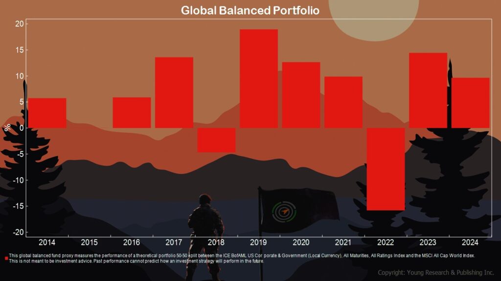 When you look at the performance for the balanced investor through my global balanced portfolio proxy, you can see it’s been pretty good sailing with 10-year average annual performance of 6.5%.
