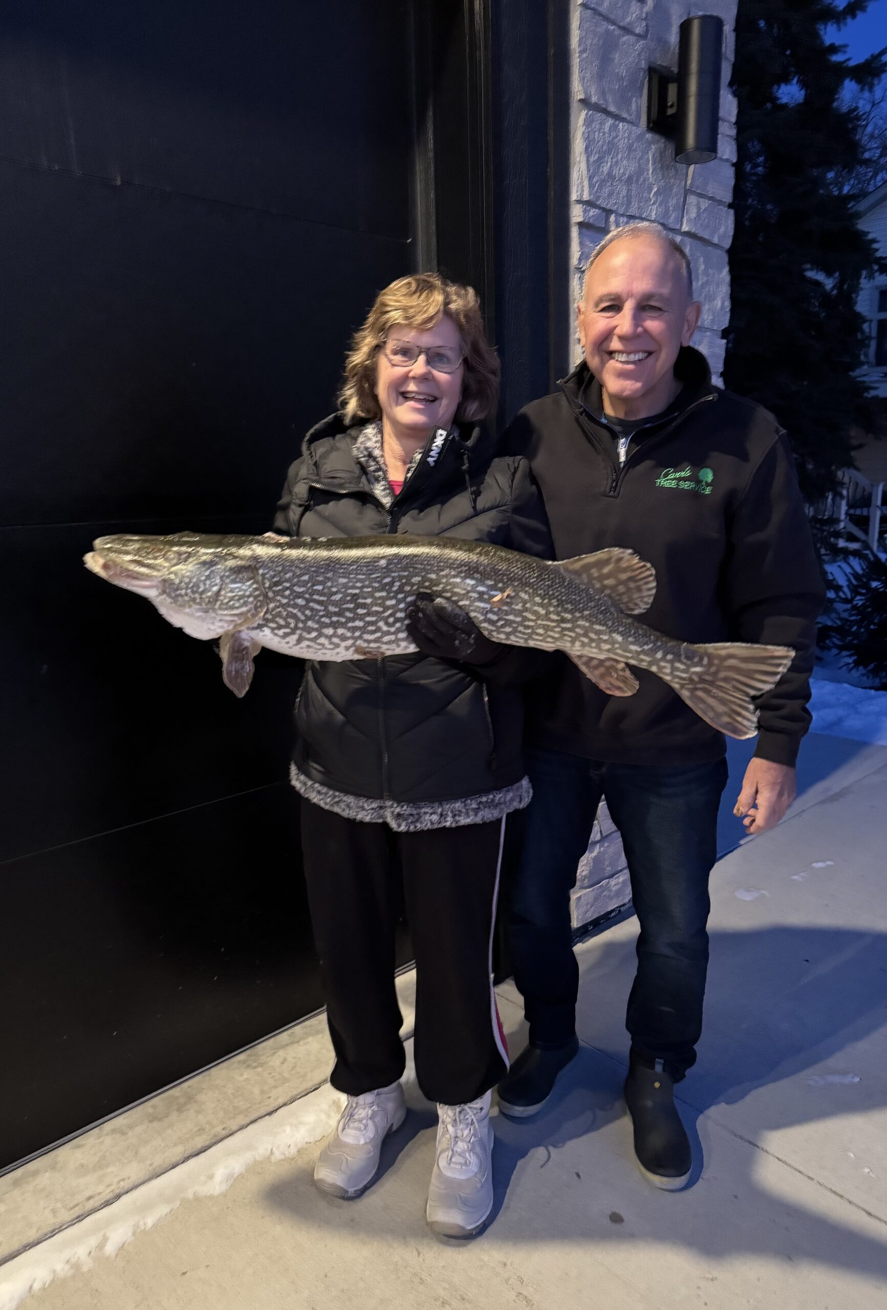 Reading Survive and Thrive this evening, and thought you would enjoy these photos. I took my sister-in-law out spearing two weeks ago. The dark house is a half mile from our new home in the background. It was an exciting 7 seconds. As the pictures show, the spear tines are barely in the pike. A miracle that I was able to get it out. I’ve taken quite a few big fish, but not 41 & 1/2 “. That’s in 40-plus years. She will take this one to the taxidermist. Normally, we pickle the pike.