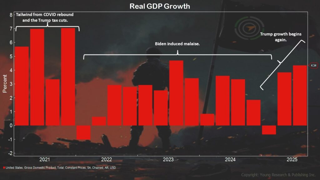 You read here that President Donald Trump’s deregulation agenda is powering America’s economy. That’s a big change from the regulation-induced malaise of the Biden era. Trump has had two opportunities now to take America out of the hands of serial regulators (first Obama and then Biden), to cut taxes, and to induce growth in the world’s largest economy.