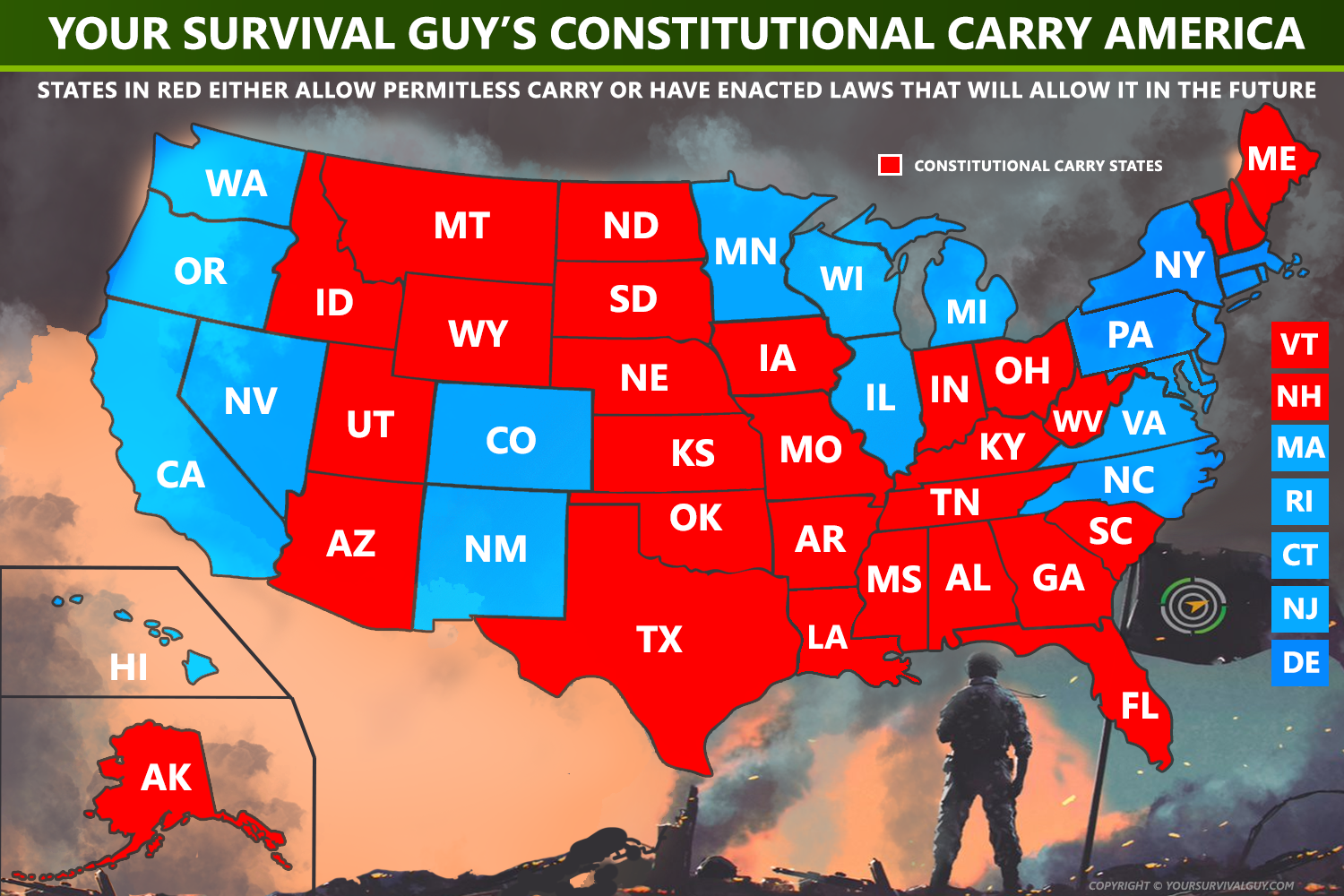Action Line: South Carolina follows Louisiana’s enactment of a similar law by only a few days. If you haven’t done so already, get your gun and your training now. In more places in America, you can use a firearm to protect yourself in public without a permit, but remember, that doesn’t relieve gun owners of their moral obligation to get good training. In an emergency situation, you won’t rise to the occasion; you’ll fall to the level of your training. If you have none, that could be disastrous. If you’re still living in one of the states where politicians don’t respect your Second Amendment rights, maybe it’s time to look for a better America. Start your search with Your Survival Guy’s recently released 2024 Super States. Click here to sign up for my free monthly Survive & Thrive letter.